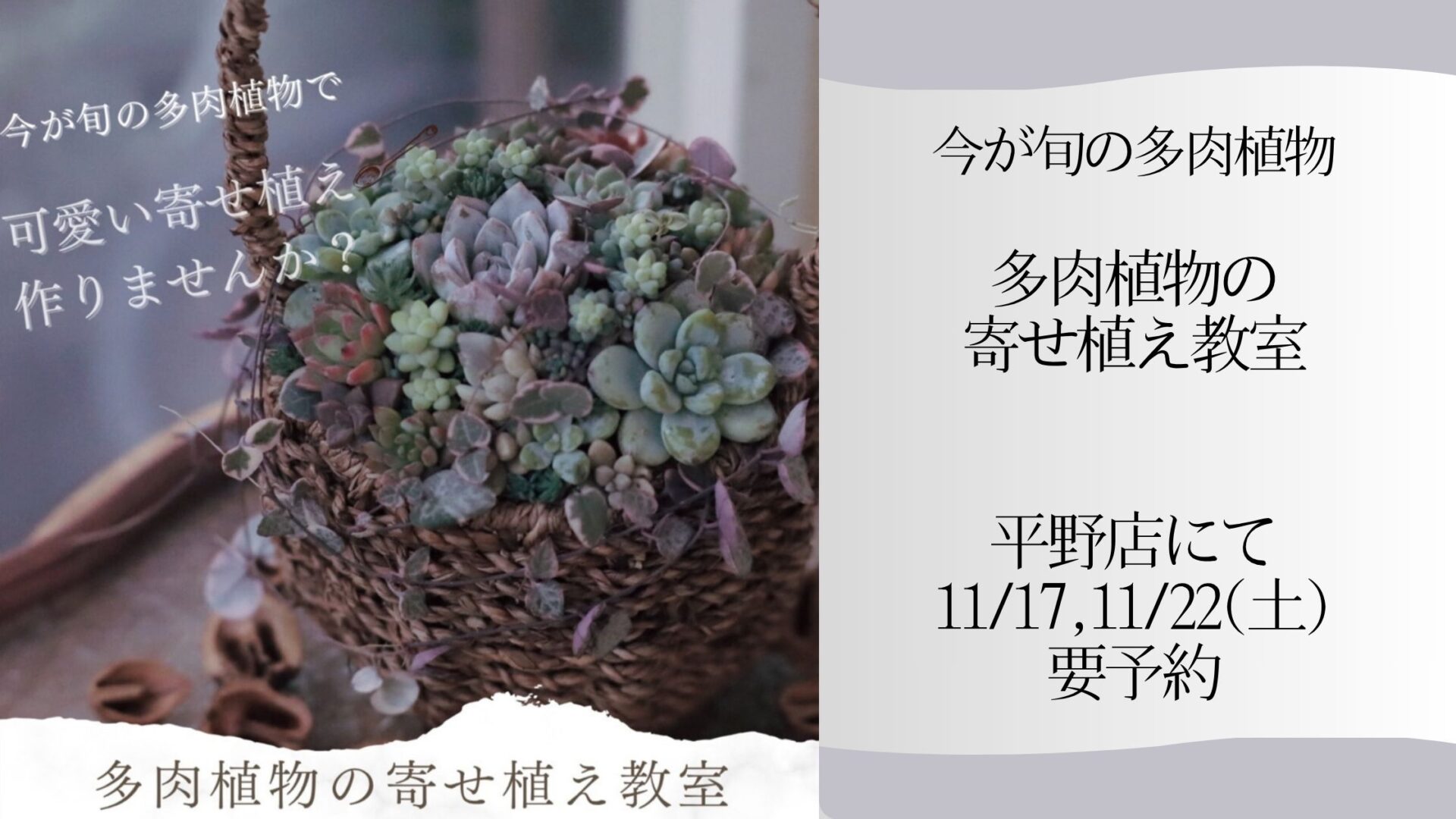 11月の中旬ごろに明幸園平野店 @meikoen_hirano で多肉植物の寄せ植え教室を開催します😊